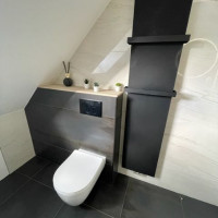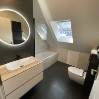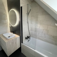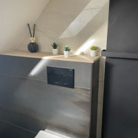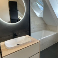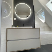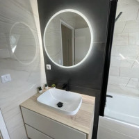 Nous avons réalisé la rénovation cette salle de bain,en conservant les éléments à leur emplacement initial, mais nous avons repensé complètement le style dans une ambiance beaucoup plus moderne et chic, en alliant le marbre et le métallisé avec des touches de bois pour le coté chaleureux.EVRY GREGY SUR YERRES – SEPTEMBRE 2021
